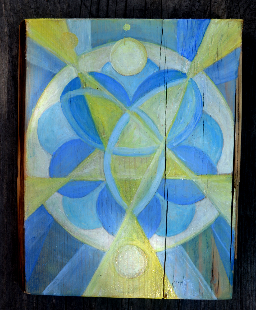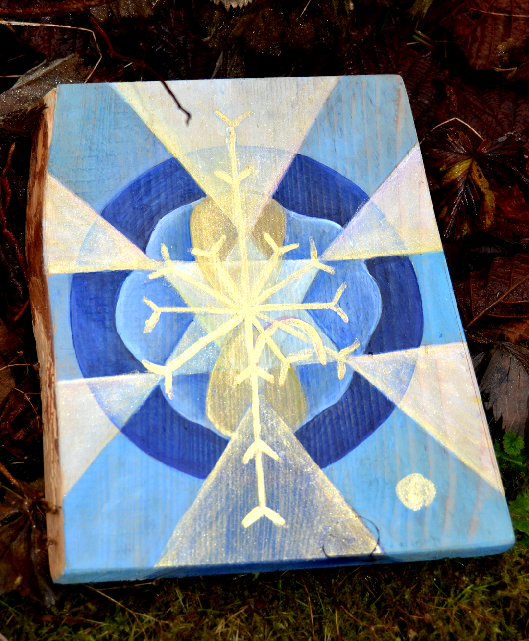 Ein wunderschönes Original Kunstwerk auf Holz gemalt. Mit goldfarbenen Akzenten.